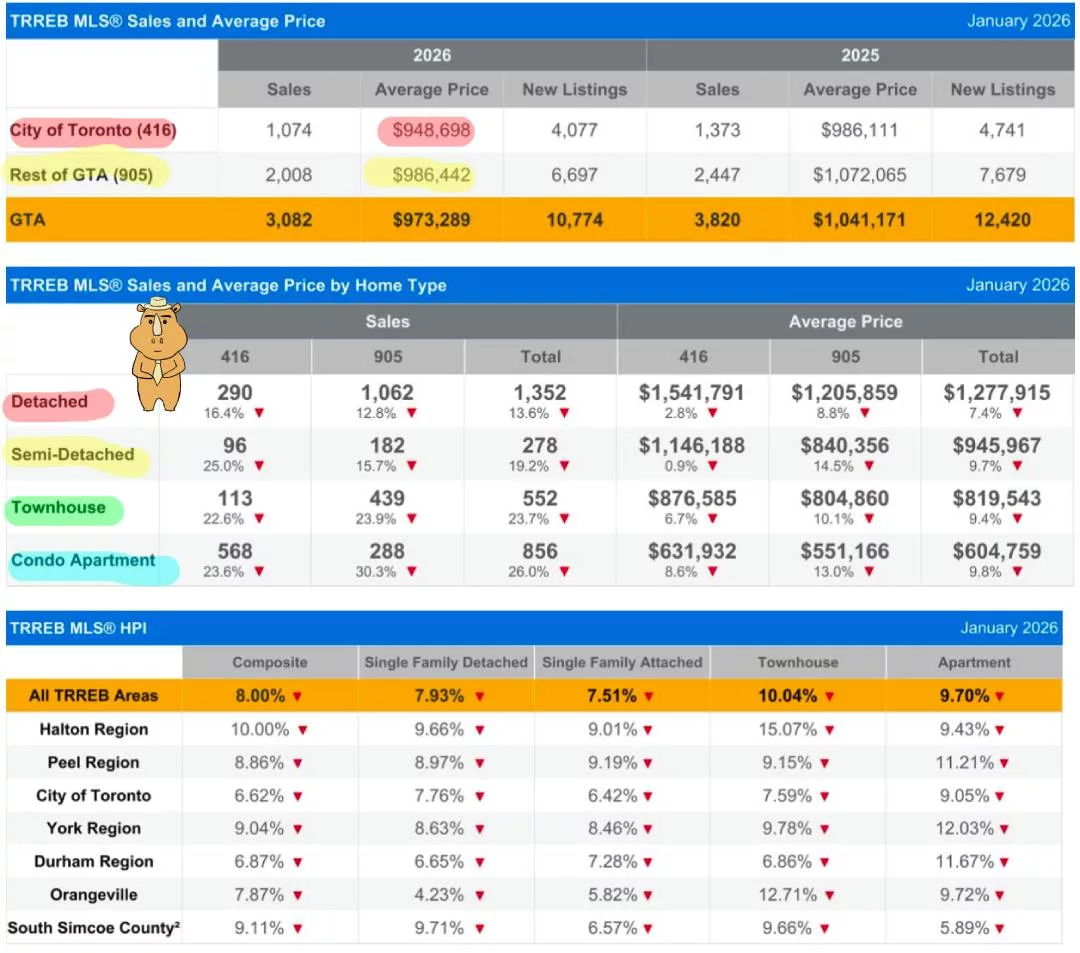2月4日,多伦多地产局公布了 大多伦多2026年1月房产报告 今天咱们一起来回顾一下刚过去的这个月,多伦多的房地产市场发生了哪些变化。