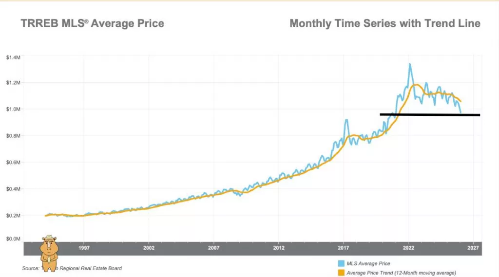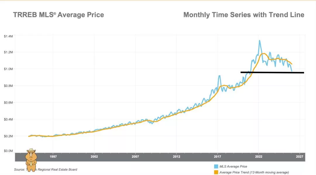 2026年大多伦多地区平均房价预测区间为100万至103万加元。大多数细分市场的高库存水平预计将继续为买家提供强大的议价能力,尤其是在公寓市场。如果买家开始出手,且市场行情趋紧,2026年上半年平均售价可能同比下降,随后在下半年趋于稳定。