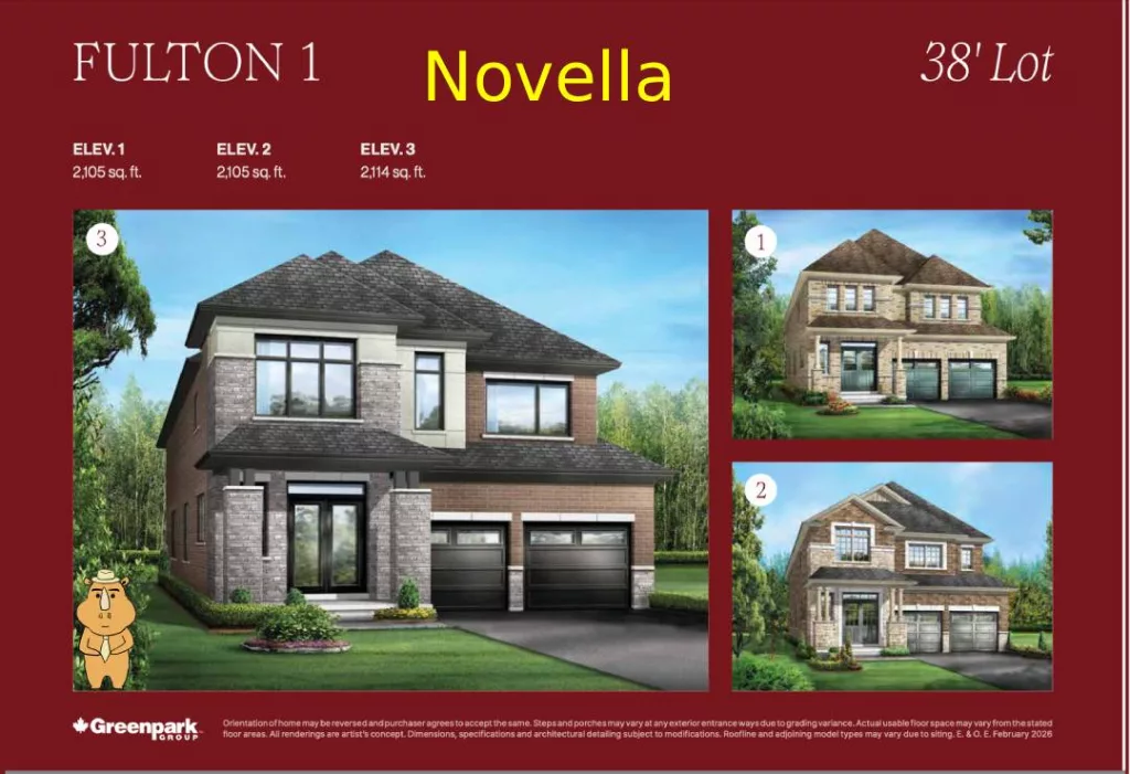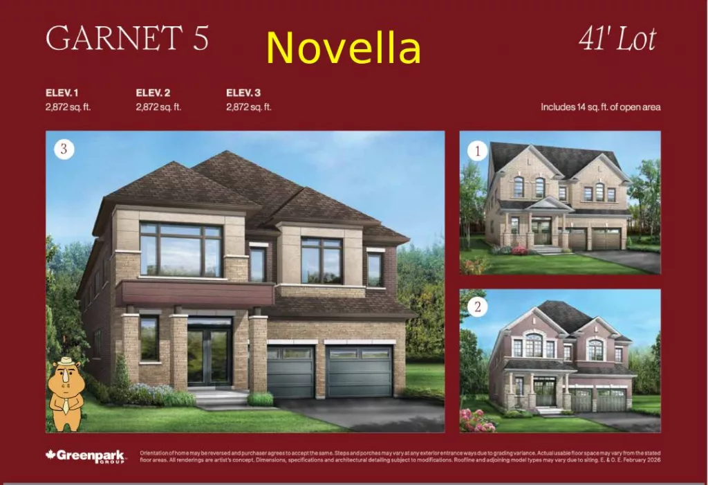 密西沙加全新独立屋 Novella by Greenpark Group 位于 Nineth Line 和 Derry Rd 附近,地处成熟社区Meadowvale,2分钟上407,4分钟上401,距离 Meadowvale Town Center 仅2公里。有 38尺,41尺和50尺 不同独立屋可选。