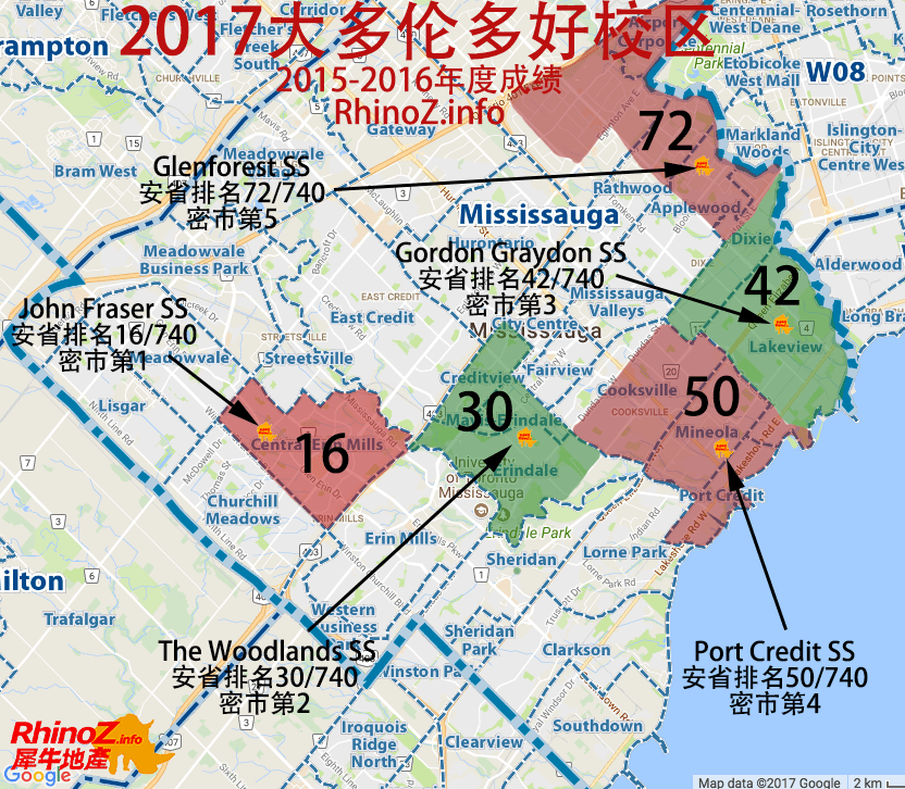 犀牛手札301:密西沙加和奥克维尔2017高中好校区+GTA城市教育排名