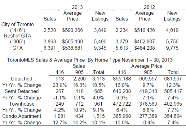 多伦多12月4日消息,整个大多地区在11月一共通过MLS系统记录了6,391桩房产交易,比去年同期上升13.9%。在同一时期,新挂牌数量下降了4.4%,活跃的挂牌数也下降了121.%。 “在大多地区,各种类型的房产交易都非常活跃。首当其冲的是独立house,condo交易紧随其后。独立house和condo的整体数量占所有交易的3/4强。”多伦多地产局总裁Dianne Usher说。 “国家住宅日刚刚过去,房屋的负担能力在GTA和全国人民的心中都是重中之重。尽管房价在不断地上升,加上贷款条件一直很紧,房价仍然在大家的可负担程度之内。”Usher补充道。 2013年11月售房的平均价格为$538,881,比去年同期的$484,208上升11.3%。由MLS® Home...