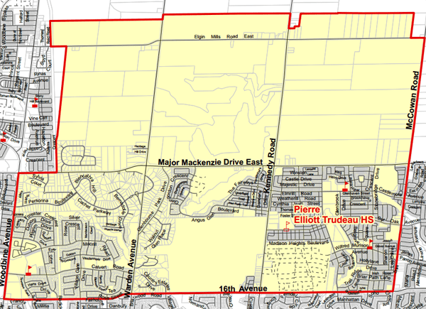 这一周大家和Rhino一起来看看在华人圈内闻名的特鲁多学区房价的涨跌情况。下面是特鲁多学区的示意图: 咱们先来对特鲁多高中做一个简短的介绍: 特鲁多高中(Pierre Elliott Trudeau High...