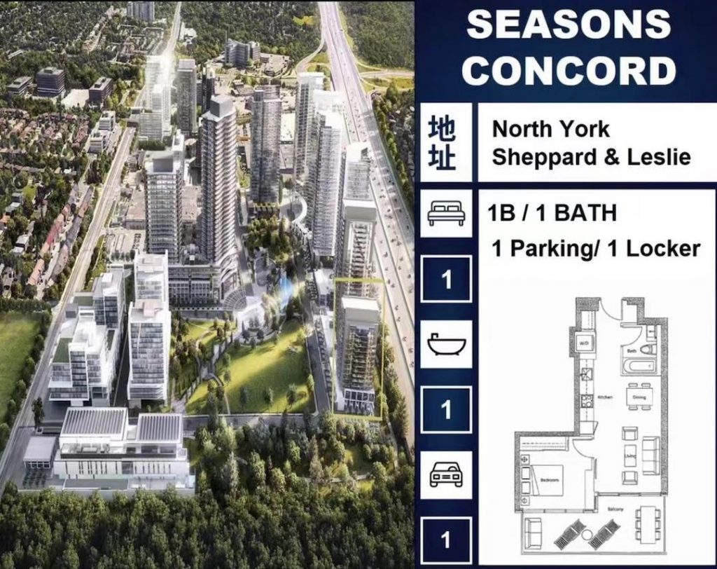 北约克地铁Seasons II开发商放出珍藏单位(低层1卧顶层3卧齐全)